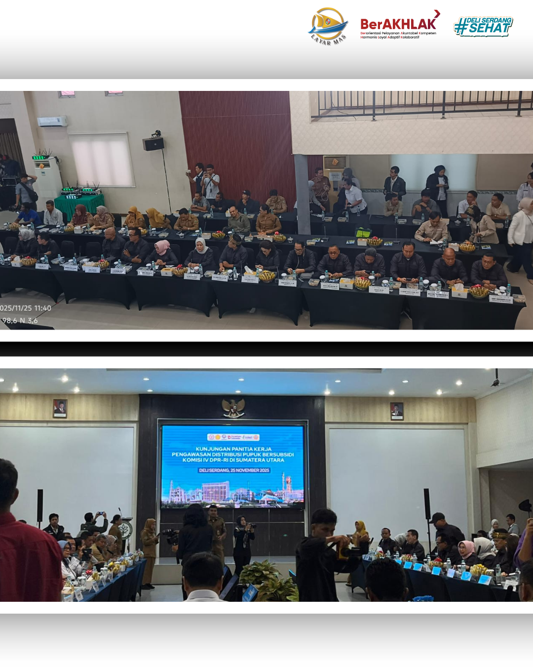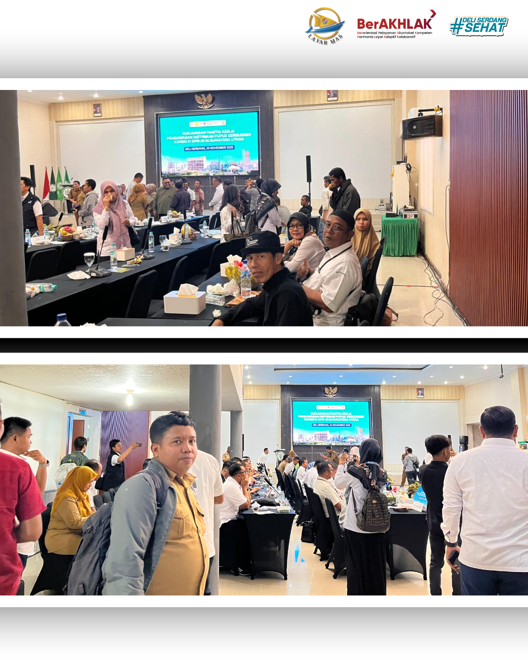 Plt. Kepala Dinas Perikanan Kabupaten Deli Serdang diwakili Sekretaris Dinas Perikanan Kabupaten Deli Serdang, Ibu Ir. Rosmeri, M.Si menghadiri kegiatan kunjungan Panitia Kerja (Panja) Pengawasan Distribusi Pupuk Bersubsidi Komisi IV DPR RI yang digelar di Aula Polbangtan Medan, Desa Paya Geli, Kecamatan Sunggal, Provinsi Sumatera Utara. Kegiatan ini juga diikuti oleh Bupati Deli Serdang, Diwakili Asisten Perekonomian dan Pembangunan Kabupaten Deli Serdang, Bapak Drs. Hendra Wijaya serta sejumlah perwakilan instansi terkait dari sektor pertanian, perikanan, dan ketahanan pangan. Selasa (26/11/2025).