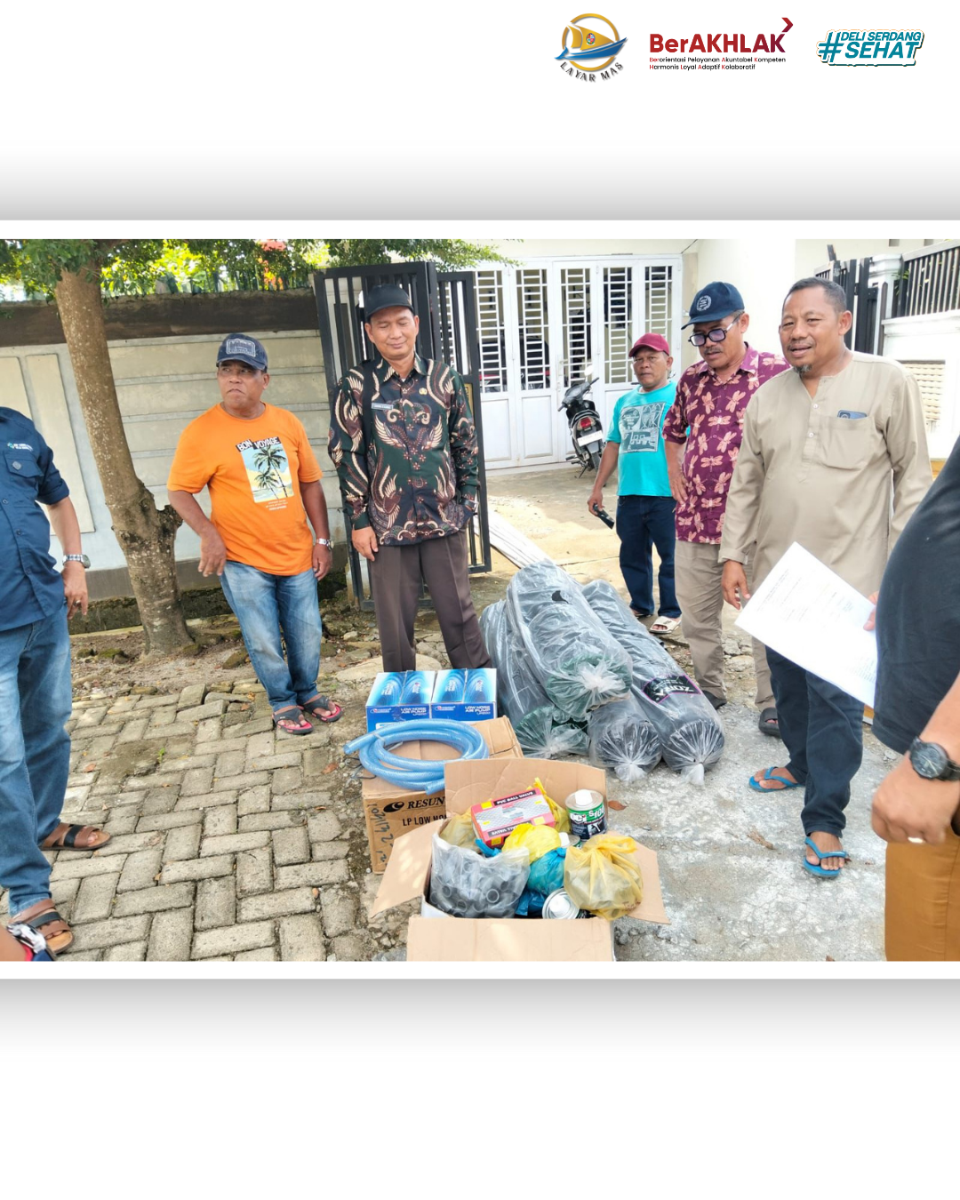 Dinas Perikanan Kabupaten Deli Serdang menyerahkan bantuan sarana prasarana berupa 5 unit kolam terpal bioflok full set kepada Kelompok Pembudidaya Ikan (Pokdakan) TIMA-II di Desa Marindal II, Kecamatan Patumbak. Selasa (21/10/2025)